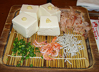 | そのB>お昼ごはんを食べました 駅ビルの銀座ライオンでランチをスル。 総勢10名様の団体は、適度な広さの小部屋に案内された。 店員さんの、「コノ集団は何だろう?」と言ふ 冷ややかな視線が何ともイタイ。 ↑写真左より> 駿河湾のこだわり豆腐、デザート盛合わせを食す。 デザートのタイミングを言うの忘れてて、豆腐とアイスを一緒に食べたさ(悲)。 さすがは駿河湾豆腐ってだけあって? 豆腐に、ジャコや桜エビのトッピングは不思議だったな。 |