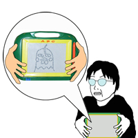 | 注文をした後、自己紹介やらお土産交換を楽しむ。 写真を沢山撮り、色んな話をした。 ↑ミカミさんが、持参したメッセージボード? スラスラっと鳥女の絵を描いてくれた! 上手いなぁ〜 |