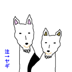 | ツートンカラーのヤギがいました。 ヤギは、モノ欲しそうに、人間様の動向を伺っていました。 |